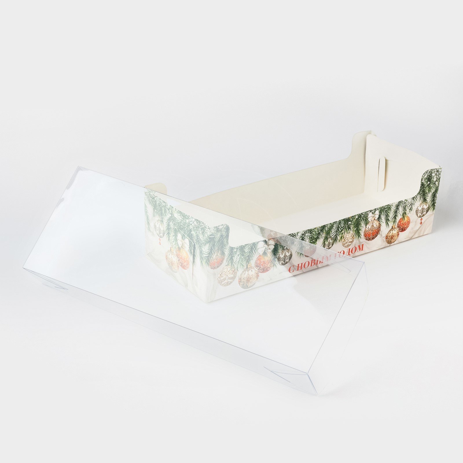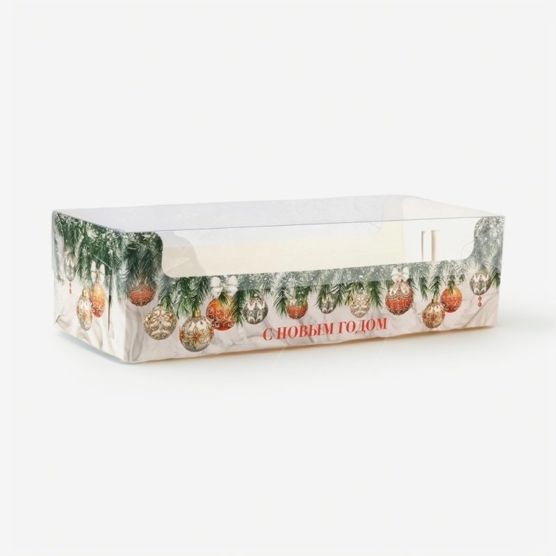 Доставка Коробка для рулета с прозрачной крышкой "С Новым Годом!" 30х11х8 см из магазина в вашем городе: