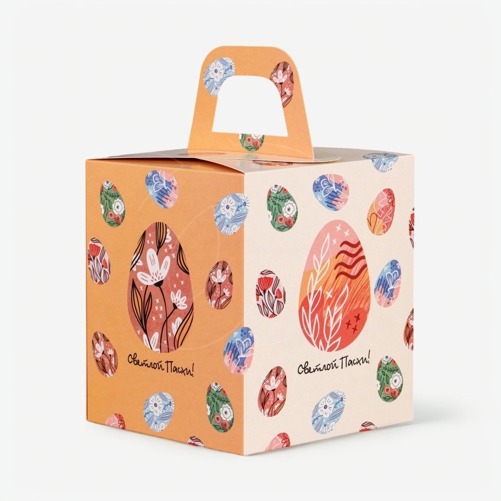 Доставка Коробка для торта/кулича с окном "Расписные яйца" 15х15х18 см из магазина в вашем городе: