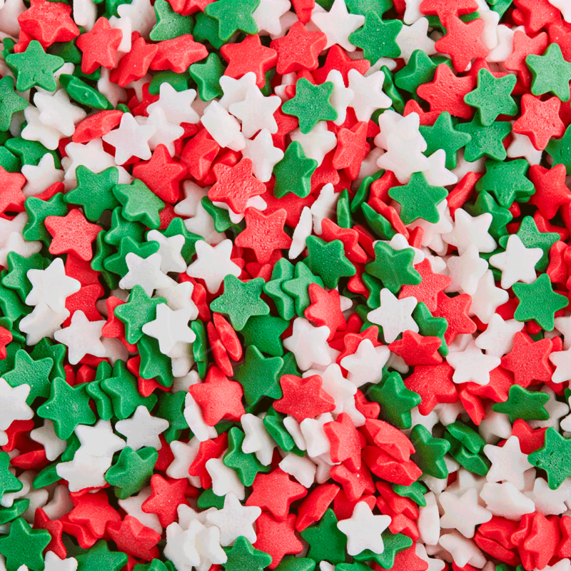 Доставка Посыпка кондитерская звёздочки "Красно-бело-зелёные мини" 50 г из магазина в вашем городе: