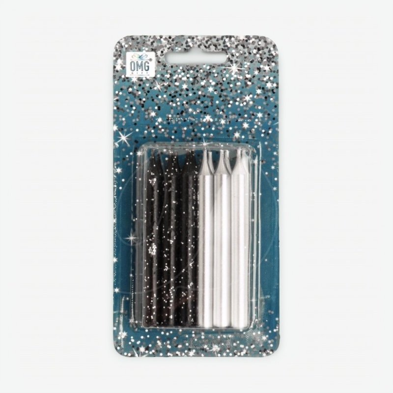Свечи декоративные "Чёрные и серебряные" 8 см 12 шт