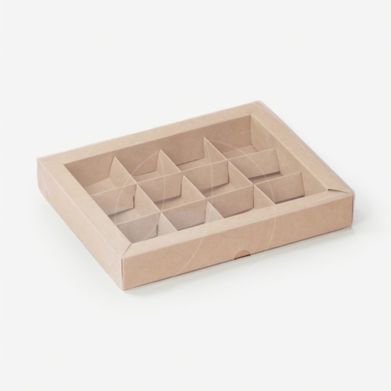 Доставка Коробка на 6 конфет с прозрачной крышкой крафт 12х16х3 см из магазина в вашем городе: